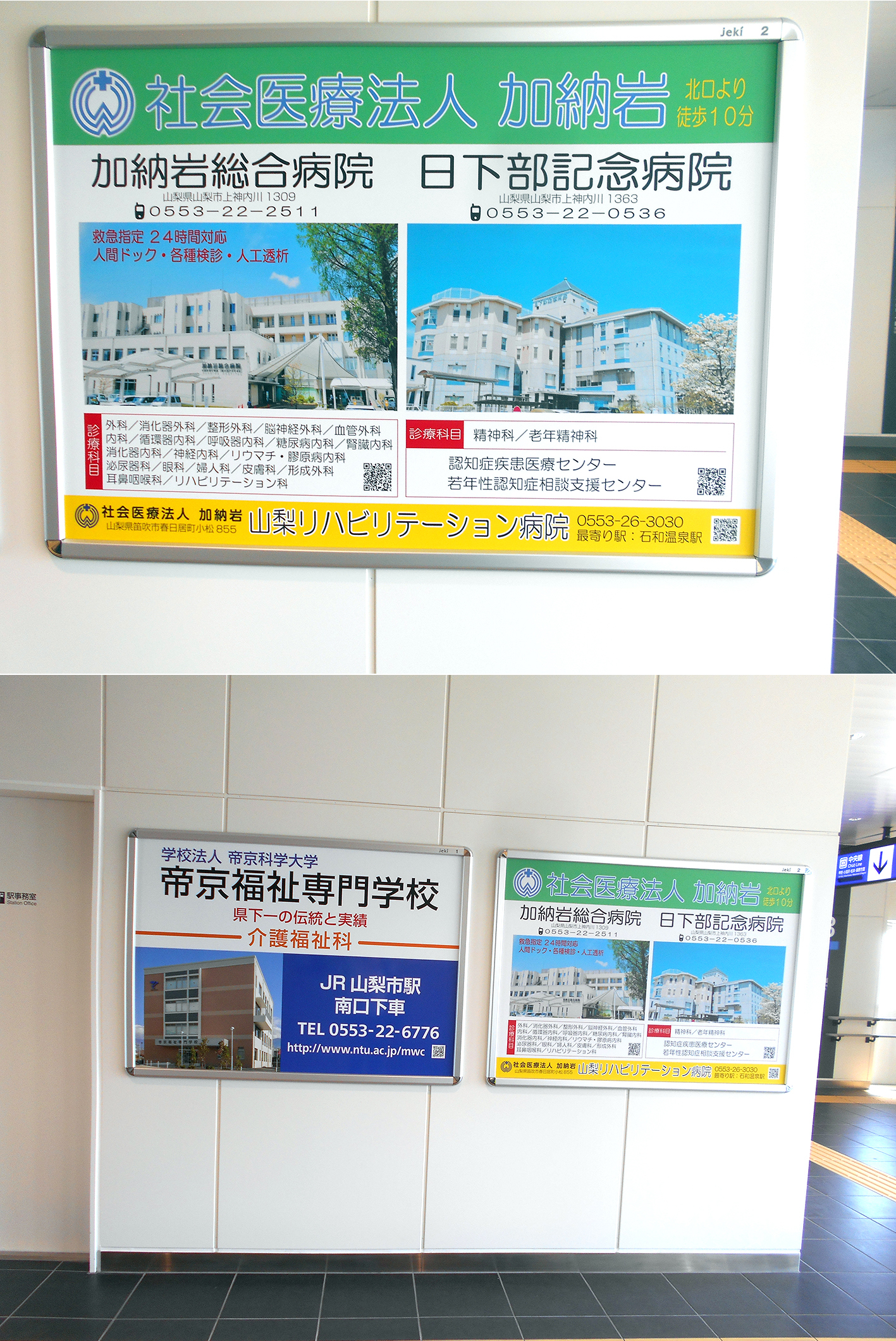 駅構内看板、吊り下げ看板、電車内広告等、あらゆる場所をご提供する事ができます。